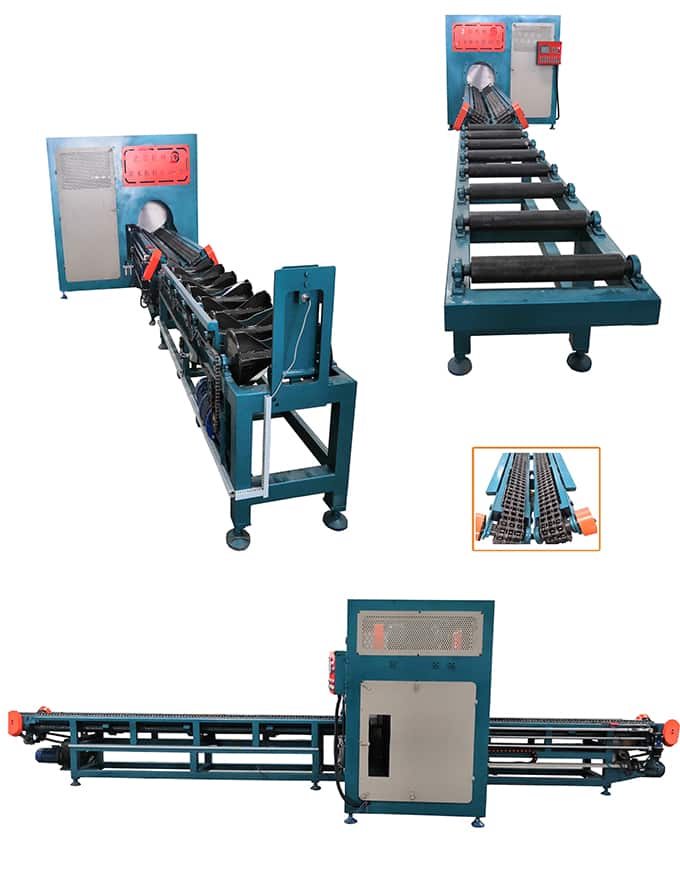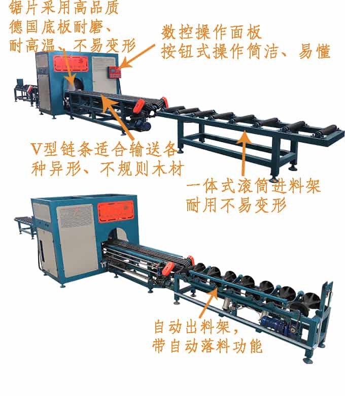 全自動(dòng)數(shù)控斷料鋸是一種用于截?cái)鄨A木的專用機(jī)械,可取代傳統(tǒng)的斷木設(shè)備。本機(jī)是左右鋸設(shè)計(jì),采用手自一體的液壓驅(qū)動(dòng),PLC數(shù)字控制系統(tǒng),只需一名普通工人便可輕松操控,穩(wěn)定性高,加工表面平整光潔,公差在2MM之內(nèi),截?cái)喾秶梢噪S意調(diào)節(jié)。加工長(zhǎng)度和速度均可根據(jù)實(shí)際所需規(guī)格隨意調(diào)節(jié),效率高,是傳統(tǒng)截?cái)鄼C(jī)的2-5倍。鋸片配進(jìn)口合金鋸片,使用壽命長(zhǎng).適用于原生木材,板材板方的切斷加工.本設(shè)備采用輸送臺(tái)自動(dòng)進(jìn)料,自動(dòng)感應(yīng)壓料,自動(dòng)截?cái)?輸送臺(tái)自動(dòng)出料等先進(jìn)裝備,具有操作簡(jiǎn)單,安全,效率快,切斷長(zhǎng)短可隨意設(shè)定,省時(shí)省工,大大減輕操作者勞動(dòng)強(qiáng)度等優(yōu)點(diǎn).
