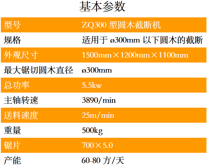 ZQ300型圓木截斷機是一種用于截斷圓木的專用機器,可代替傳統的斷木機器。,只需一人便可輕松操控,穩定性高,加工表面平整光潔,避免二次加工。加工長度和速度均可根據實際情況調整,鋸片可配高速鋼或合金鋸片。