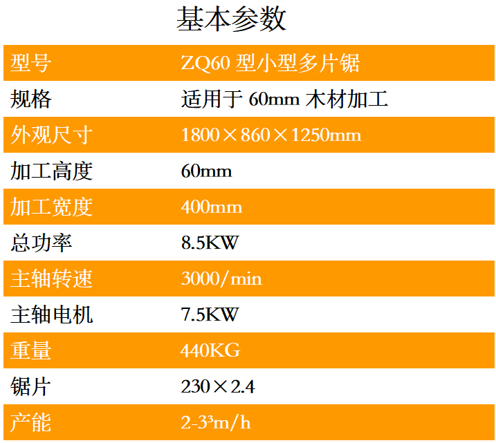 小型多片鋸用于對木板進行開條開板。規格多、送料速度快、修切精度高。安全、高效、穩定!