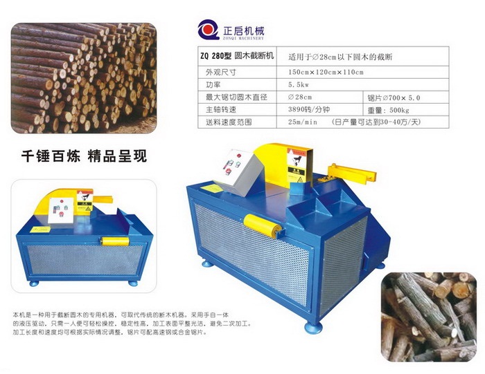 小型原木截斷鋸適合各種原木截斷,長短任意可調,采用鋸片移動式截斷,安全、高效、省時省工、產量高;