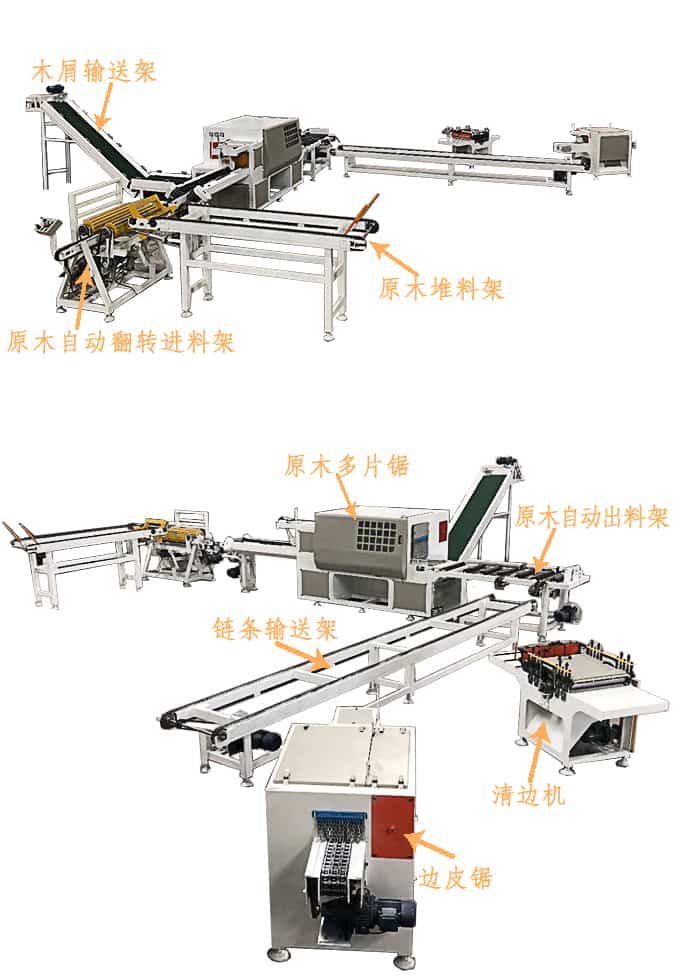 ZQ350型全自動原木多片鋸生產線是一種用于原木的開破以及分片的高性能專用機械