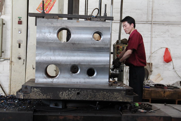 機械的整個主軸箱采用12厚的鋼板焊接成