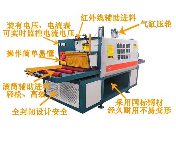 2.上壓料裝置采用氣缸壓輪,同時具有容易調節加工厚度,運行穩定,故障率低的優點。