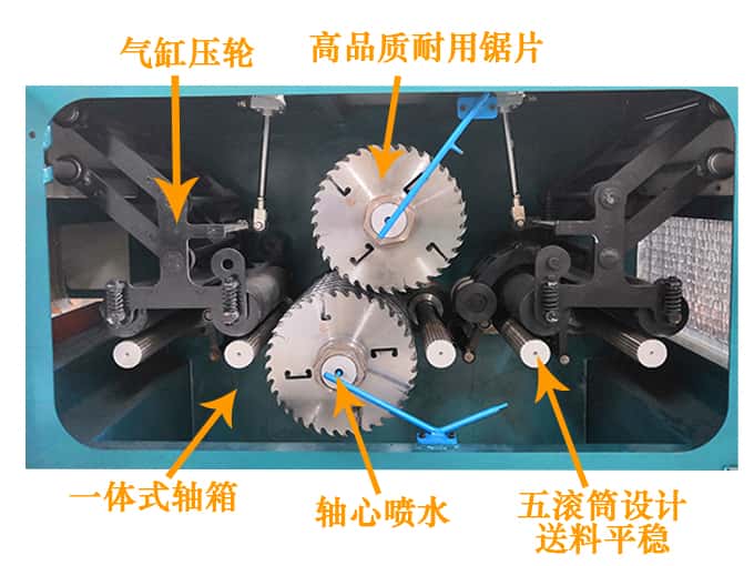 5.采用上下軸鋸設(shè)計(jì),具有鋸片直徑小,鋸路小省料的優(yōu)點(diǎn)。上下鋸設(shè)計(jì)的鋸片鋸路是正常單軸鋸片鋸路的50%。加工同樣高度的木料其鋸路僅為普通單據(jù)軸的1/2。鋸切面光滑平整可以代替刨。節(jié)能降耗一次多片加工。送料速度高,大大提高加工效率,上料快,操作簡(jiǎn)單,維護(hù)保養(yǎng)簡(jiǎn)單,上下輥主彈簧壓力,送料平穩(wěn),增加鋸片的使用壽命。