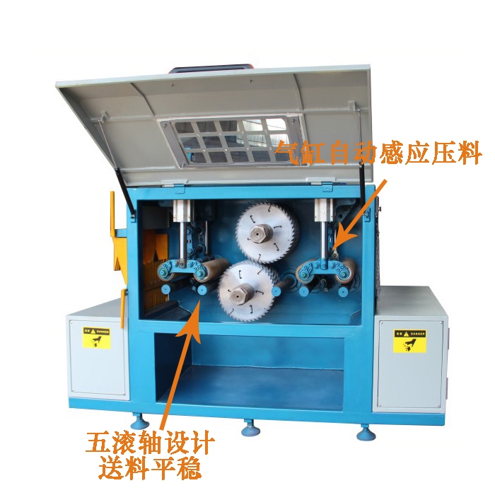 5.采用上下軸鋸設計,具有鋸片直徑小,鋸路小省料的優(yōu)點。上下鋸設計的鋸片鋸路是正常單軸鋸片鋸路的50%。加工同樣高度的木料其鋸路僅為普通單據軸的1/2。鋸切面光滑平整可以代替刨。節(jié)能降耗一次多片加工。送料速度高,大大提高加工效率,上料快,操作簡單,維護保養(yǎng)簡單,上下輥主氣缸壓力,送料平穩(wěn),增加鋸片的使用壽命。