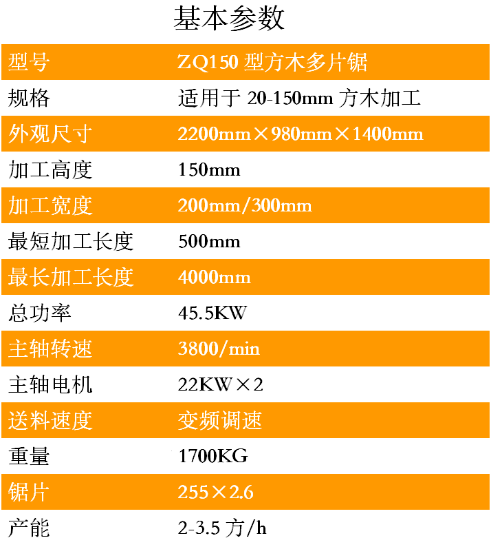 1.ZQ150型方木多片鋸采用獨立5條滾軸傳動設計,可以保證同一個平面線上,送料平穩(wěn)。